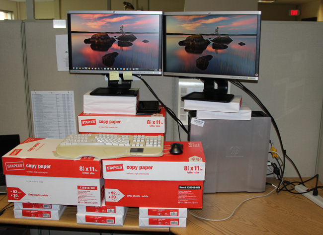 Assuming you are interested in trying this, it takes a lot of time and effort to purchase everything and set it up just to see if you like it or not, so I came up with a very quick and inexpensive temporary solution. I’ve got a cubicle with enough space to keep my sitting computing area and put a stand-up area right beside it. To get a feel for how I would like it, I built a temporary standing desk using copy paper boxes.