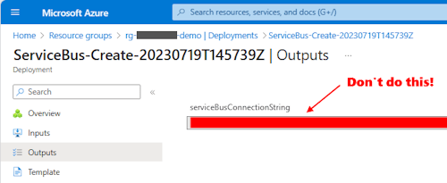 The first pitfall that trips people up is that it is tempting to take a secret like a connection string and just make it an output in the YAML pipeline, after which it’s super easy to pass that value into a subsequent module and create a key vault entry. The issue with that is that once you set it as an output, the value is visible to anyone who can review your deployment logs in the Azure portal, which is not good.